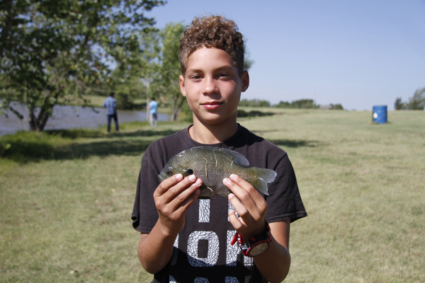"I've never seen a fish in person before now, for real, anyway," Coca said as he admired a palm-sized bluegill that he reeled in. "This is my first fish. It's pretty cool."