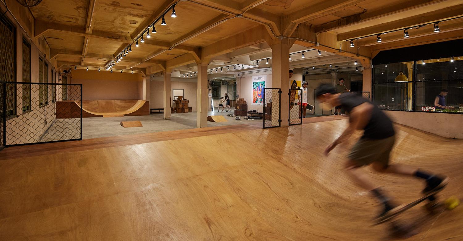Tucked away on the 3rd floor of standalone Chaipattanasilp Building in Talat Noi, next to Phadung Krung Kasem canal, indoor skatepark Jump Master Skate Haus has opened its doors a month ago, further proving that Charoen Krung should be hailed as a "hipster neighbourhood". Built on the concept of "Feel like home", the venue is like an industrial loft-style, blending contemporary touches with an old-fashioned concrete structure, while its polished-wooden ramps allow surf skaters to show-off cool moves. The place is fitted with wave banks, giant slopes and a mini pump track -- just to name a few -- for that quintessential skating experience. Jump Master Skate Haus opens for private sessions only. Rental fees are priced at B1,500 for up to five skaters and B2,500 per session for up to 10 skaters. There are four sessions each day and each lasts an hour and 50 minutes.