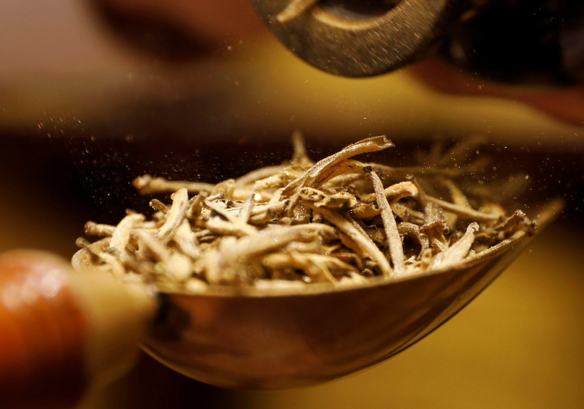The Grand Golden Yin Zhen is described as a "glimpse of the divine in a teacup", and the gold is said to have anti-oxidant properties that revitalise and rejuvenate the skin.