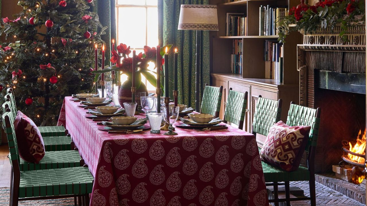 'Over Christmas, I love keeping the colour palette grounded in classic reds and greens,' says Birdie Fortescue. ‘The green and red combination creates a timeless balance of warmth and tradition that makes this scheme so charming. Our berry red Paisley tablecloth sets the tone beautifully and can be balanced with green when adding tableware such as our dyed rattan candlesticks and napkins, as well as winter greenery from the garden.'