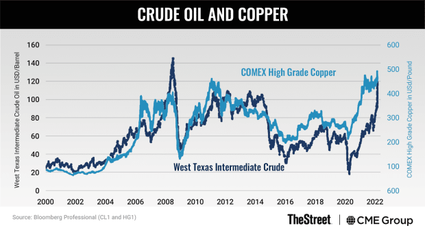 Mining and refining metals is an energy-intensive business. As such, copper prices tend to show a great deal of co-movement with the price of West Texas Intermediate crude oil, as well as other crude oil benchmarks. In the past, one might have assumed that this relationship was mostly on the input side: higher/lower crude oil and natural gas prices made mining and refining copper more/less expensive. That assumption is still valid today.