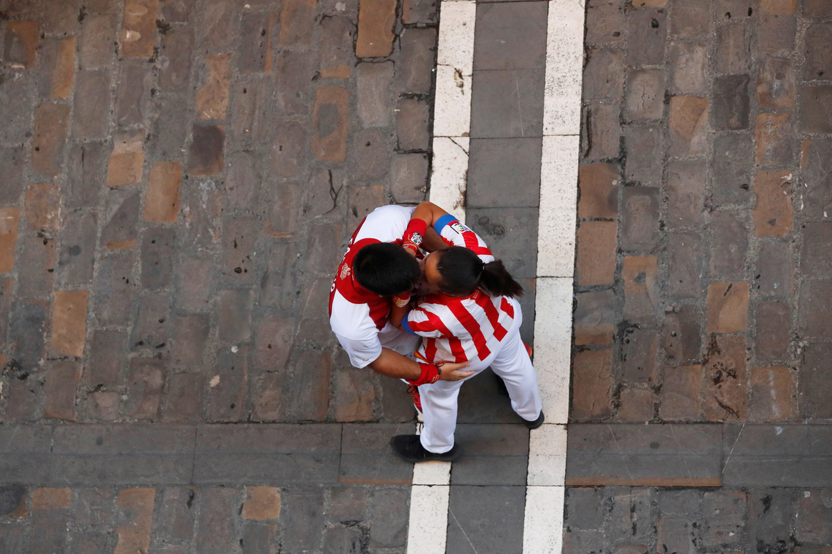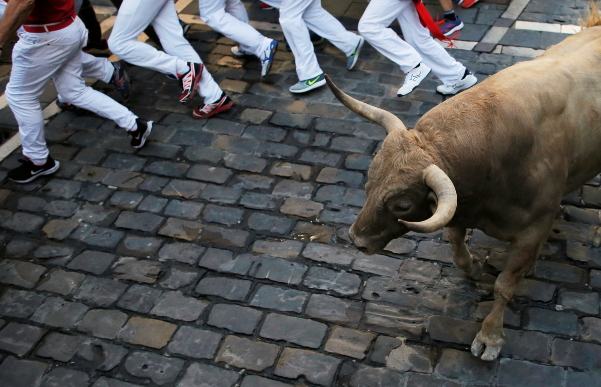 Revellers sprint near bulls and steers during the running of the bulls at the San Fermin festival in Pamplona, Spain, July 12, 2019. REUTERS/Susana VeraRevellers sprint near bulls and steers during the running of the bulls at the San Fermin festival in Pamplona, Spain, July 12, 2019. REUTERS/Jon NazcaRunner fall near bulls and steers during the running of the bulls at the San Fermin festival in Pamplona, Spain, July 12, 2019. REUTERS/Susana VeraRevellers sprint near bulls and steers during the running of the bulls at the San Fermin festival in Pamplona, Spain, July 12, 2019. REUTERS/Susana VeraRunner wait for the start of the running of the bulls at the San Fermin festival in Pamplona, Spain, July 12, 2019. REUTERS/Susana VeraRunners wait for the start of the running of the bulls at the San Fermin festival in Pamplona, Spain, July 12, 2019. REUTERS/Susana Vera