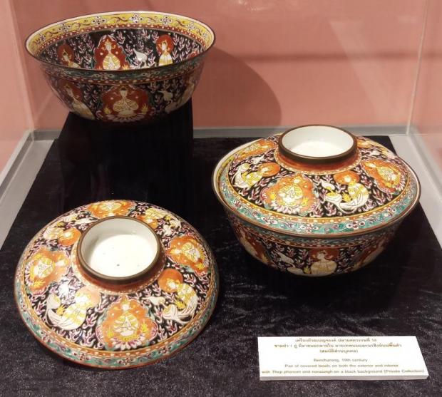 "Bencharong is a form of sophisticated art that is full of stories of the invention and taste of people during different periods of time. Historical evidence found at archaeological sites showed us that the Chinese were the creators of the world's oldest pottery. Some pots found in China's Jiangxi province are 20,000 years old. Bencharong porcelain in Siam was made to order and imported from China during the Ayutthaya period until the Rattanakosin era. Bencharong is regarded as beautiful ware that reflects civilisation, arts and sciences as well as Thai artistic uniqueness," Culture Minister Veera Rojpojanarat said while inaugurating the exhibition last month.