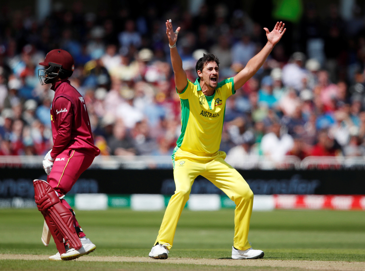NOTTINGHAM, England (Reuters) - Fast bowler Mitchell Starc's five-wicket haul and a defiant 92 by Nathan Coulter-Nile helped Australia beat West Indies by 15 runs at Trent Bridge on Thursday to secure their second consecutive win at the Cricket World Cup.