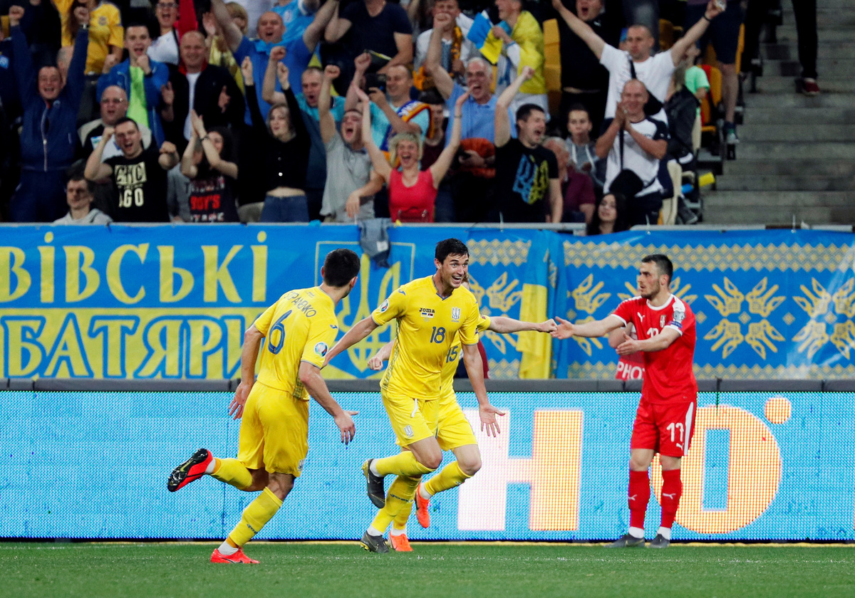 LVIV, UKRAINE (Reuters) - Two goals each from midfielder Viktor Tsygankov and forward Yevhen Konoplyanka helped Ukraine to an impressive 5-0 home win over Serbia in their Euro 2020 Group B qualifier on Friday.