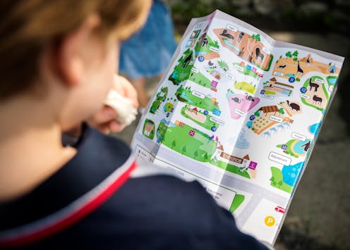 Encourage children to think about where they are in space. If they are looking at a map of the zoo, ask them where they are in relation to the kangaroos or lions. When driving to swimming lessons, ask them to give directions on how to get there.