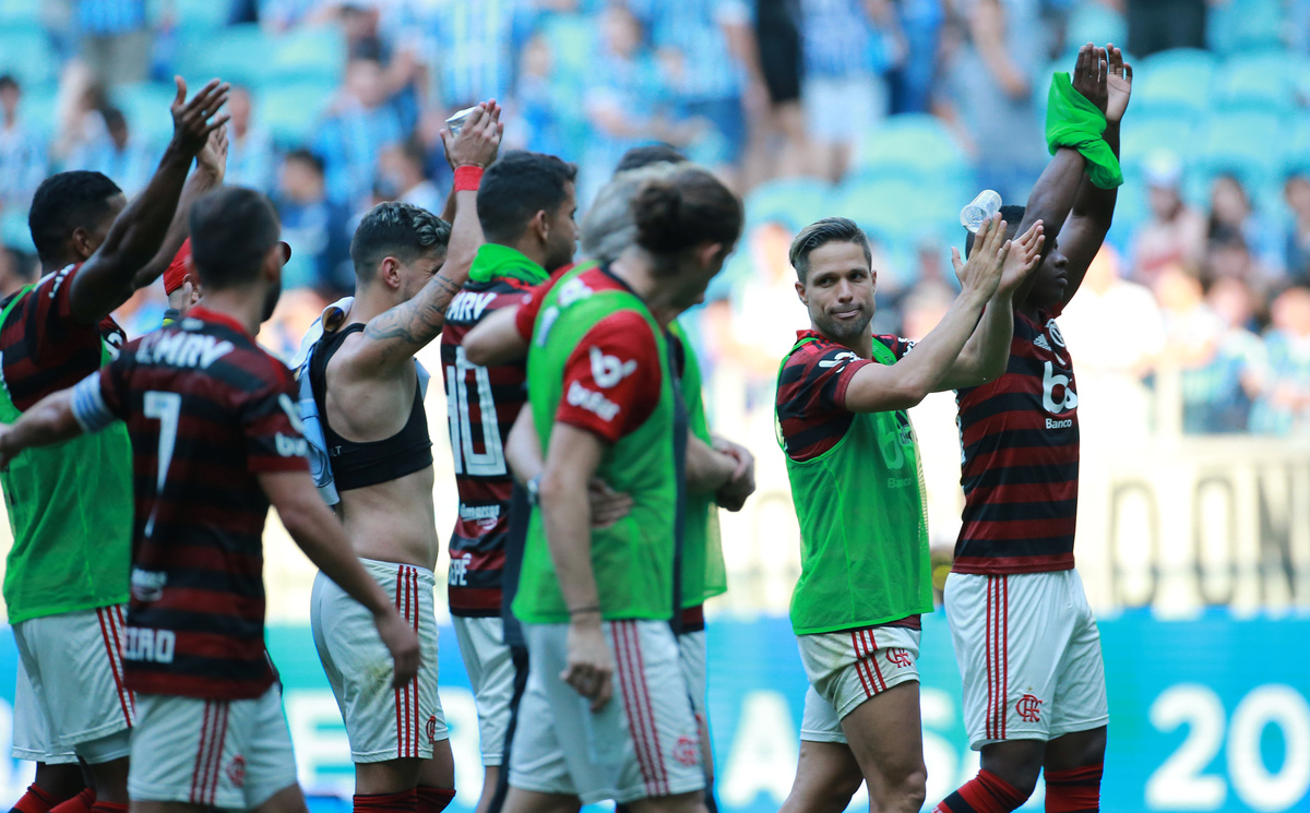 Soccer Football - Brasileiro Championship - Gremio v Flamengo - Arena do Gremio, Porto Alegre, Brazil - November 17, 2019 Flamengo's Diego and team mates applaud fans after the match REUTERS/Diego Vara