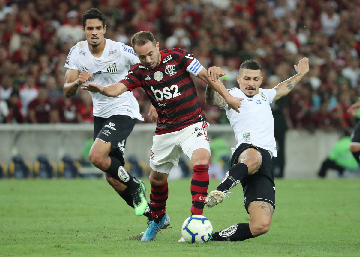 Soccer Football - Brasileiro Championship - Flamengo v Santos - Maracana Stadium, Rio de Janeiro, Brazil - September 14, 2019 Flamengo's Everton Ribeiro in action with Santos' Alison REUTERS/Sergio Moraes
