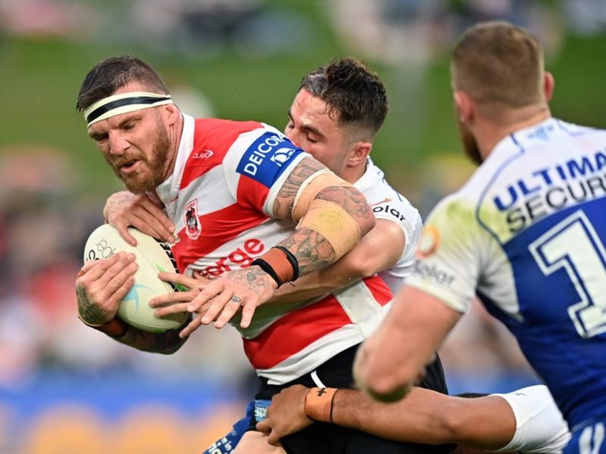 The Dragons led by six points at halftime but kicked on with another five tries as things got ugly for the Bulldogs.