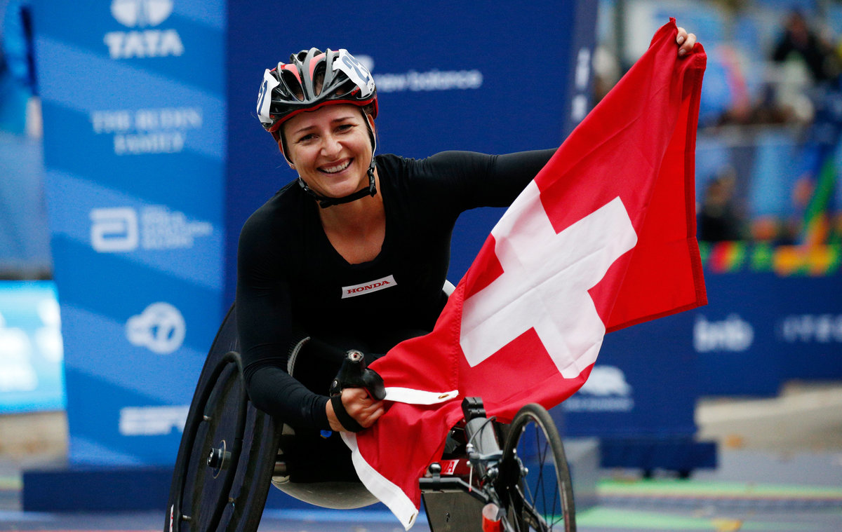 Manuela Schaer stunned five-times champion Tatyana McFadden in the women's race, defeating the American by almost three minutes in 1:48.09.