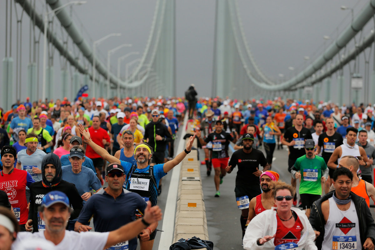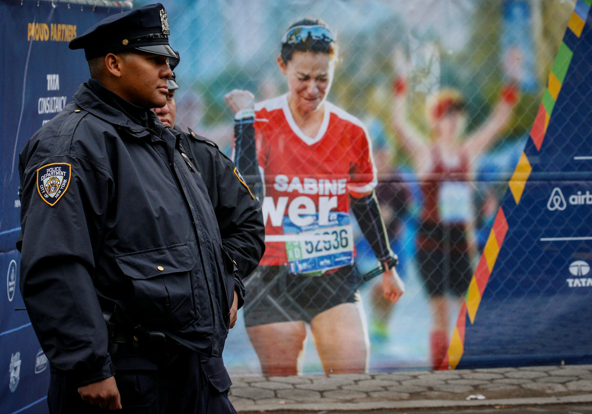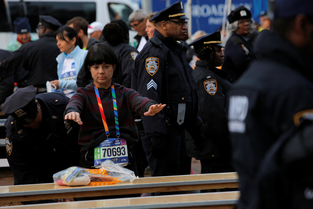 Runners cross the Verrazano-Narrows Bridge shortly after the start of the New York City Marathon in New York, U.S., November 5, 2017. REUTERS/Lucas JacksonThe first wave of runners make their way across the Verrazano-Narrows Bridge during the start of the New York City Marathon in New York, U.S., November 5, 2017. REUTERS/Lucas JacksonThe first wave of runners make their way across the Verrazano-Narrows Bridge during the start of the New York City Marathon in New York, U.S., November 5, 2017. REUTERS/Lucas JacksonNew York City Police (NYPD) officers stand by near the finish line of the New York City Marathon in Central Park in New York, U.S. November 5, 2017. REUTERS/Brendan McDermidA New York City Police (NYPD) officer stands by at the finish line of the New York City Marathon in Central Park in New York, U.S. November 5, 2017. REUTERS/Brendan McDermidJohn Charles Smith of Uinted Kingdom celebrates at the finish line of the New York City Marathon after winning the 2nd place in wheelchair race in Central Park in New York, U.S., November 5, 2017. REUTERS/Brendan McDermidThe winners of the wheelchair race, 2nd place winner John Charles Smith of Uinted Kingdom (L), winner Marcel Hug of Switzerland (C) and 3rd place winner Sho Watanabe of Japan (R) celebrate at the finish line of the New York City Marathon after winning the wheelchair race in Central Park in New York, U.S., November 5, 2017. REUTERS/Brendan McDermidManuela Schar of Switzerland celebrates after crossing the finish line of the New York City Marathon, winning the women's wheelchair race in Central Park in New York, U.S., November 5, 2017. REUTERS/Brendan McDermidMarcel Hug of Switzerland celebrates at the finish line of the New York City Marathon after winning the wheelchair race in Central Park in New York, U.S., November 5, 2017. REUTERS/Brendan McDermid?Sho Watanabe of Japan celebrates at the finish line of the New York City Marathon after winning the 3rd place in wheelchair race in Central Park in New York, U.S., November 5, 2017. REUTERS/Brendan McDermidAthletics - New York City Marathon - New York, U.S. - November 5, 2017 - New York Police conduct security checks as runners check in for the New York City Marathon. REUTERS/Andrew KellyAthletics - New York City Marathon - New York, U.S. - November 5, 2017 - An entrant goes through a security check procedure conducted by police at the check-in area New York City Marathon. REUTERS/Andrew Kelly