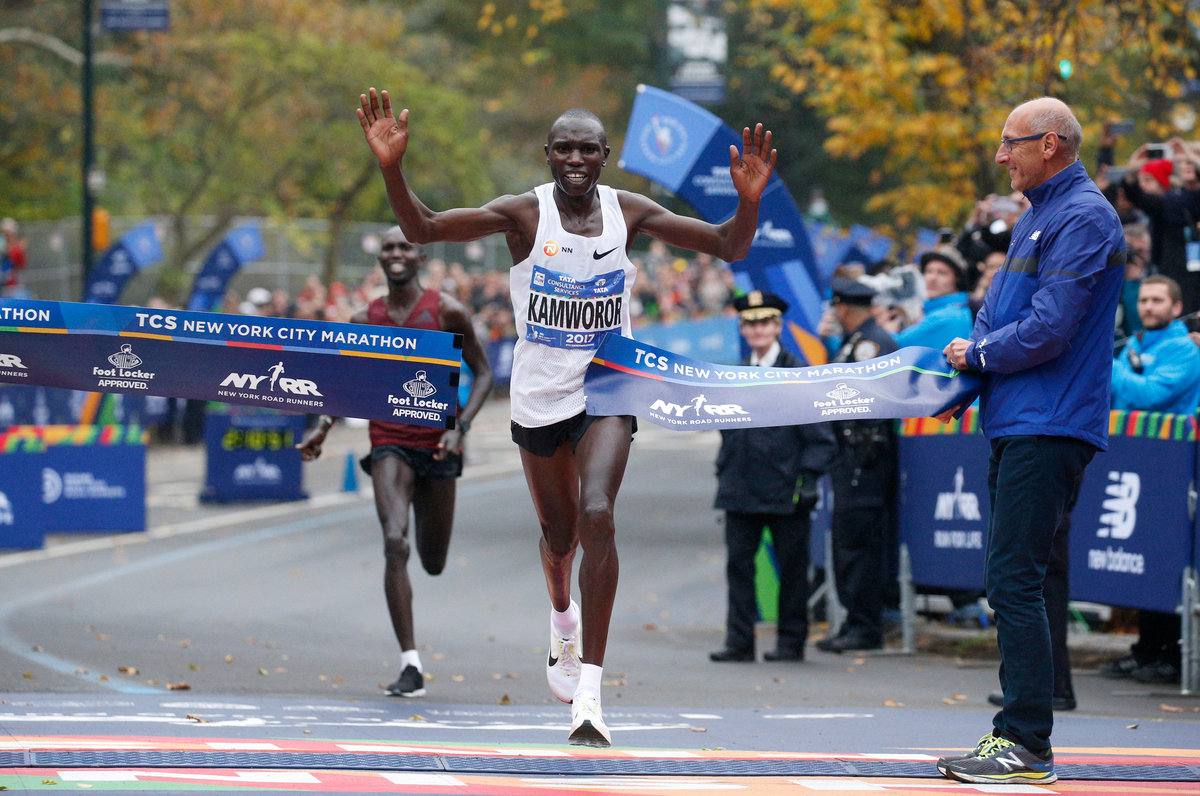 Geoffrey Kamworor of Kenya crosses the finish line to win the New York City Marathon in Central Park in New York, U.S., November 5, 2017. REUTERS/Brendan McDermid