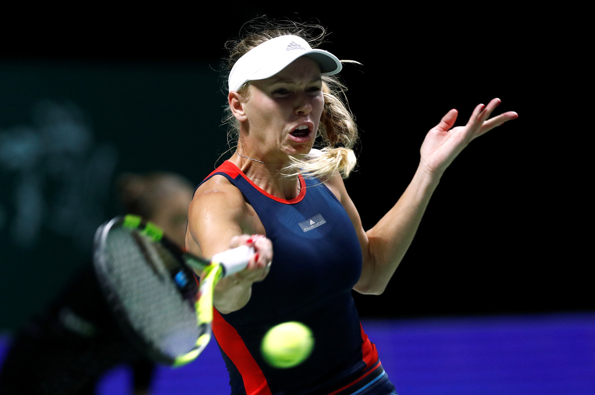 SINGAPORE (Reuters) - Big-serving Karolina Pliskova used her most potent weapon to damaging effect as she overwhelmed defending champion Caroline Wozniacki 6-2 6-4 in their opening round robin match of the WTA Finals at the Singapore Indoor Stadium on Sunday.