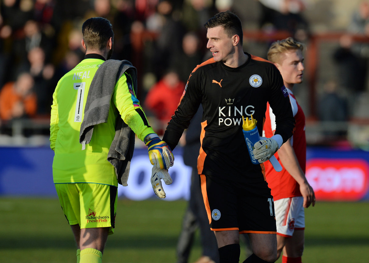 Soccer Football - FA Cup Third Round - Fleetwood Town vs Leicester City - Highbury Stadium, Fleetwood, Britain - January 6, 2018 Leicester City's Eldin Jakupovic in action Action Images via Reuters/Craig BroughSoccer Football - FA Cup Third Round - Fleetwood Town vs Leicester City - Highbury Stadium, Fleetwood, Britain - January 6, 2018 Leicester City's Ben Chilwell applauds the fans after the match REUTERS/Peter Powell