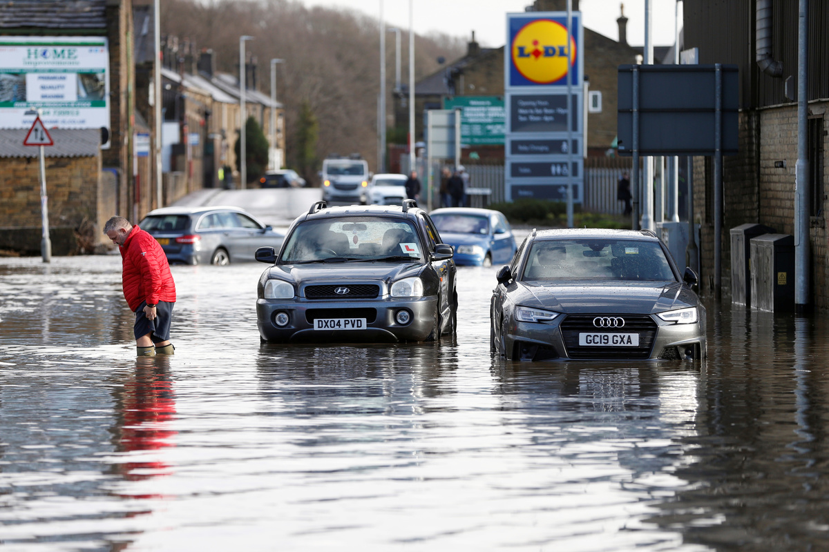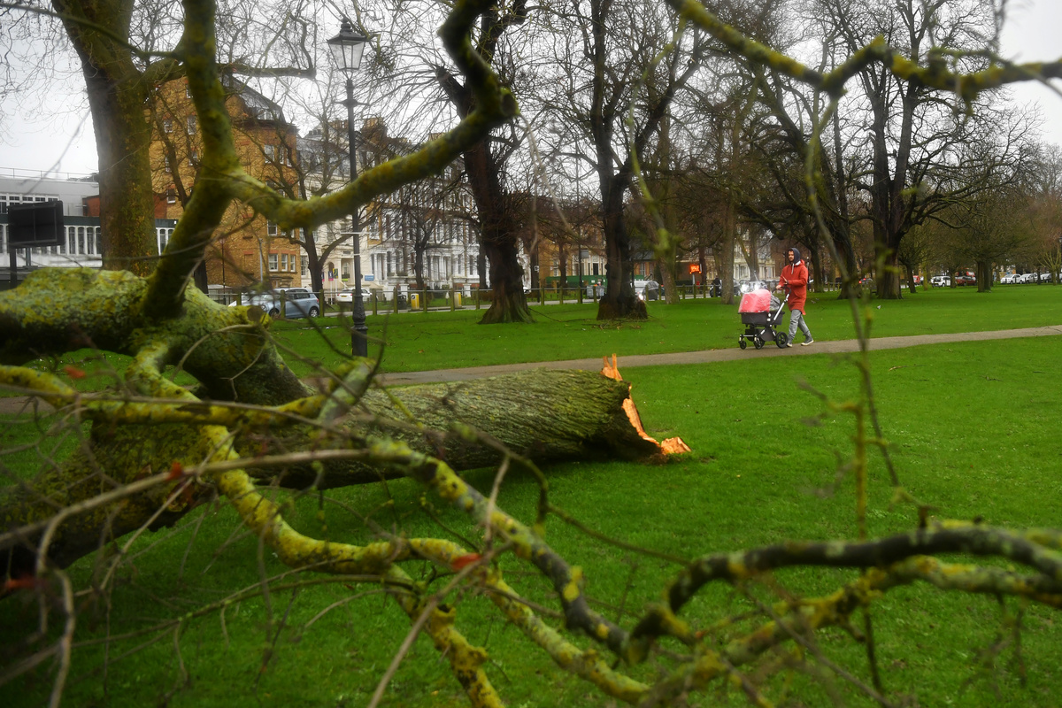 A felled tree lies on Clapham Common in south London as Storm Ciara hits large parts of Britain February 9, 2020. REUTERS/Dylan MartinezCars drive through floodwater as hurricane-force winds and rain affected the country's transport network leading to disruptions and prompting warnings of power cuts and a risk to life, in Manchester, Britain February 9, 2020. REUTERS/Jon SuperPeople climb a railing, trying to avoid the floodwater, outside a restaurant in Brighouse, West Yorkshire, Britain February 9, 2020. REUTERS/Ed SykesA man avoids the floodwater outside a restaurant in Brighouse, West Yorkshire, Britain February 9, 2020. REUTERS/Ed SykesA man walks through the floodwater next to abandoned cars in Brighouse, West Yorkshire, Britain February 9, 2020. REUTERS/Ed SykesA man walks his dog trough a windswept Clapham Common in south London as Storm Ciara hits large parts of Britain February 9, 2020. REUTERS/Dylan MartinezA flooded road is seen in Rawtenstall, Lancashire as hurricane-force winds and rain have affected Britain's transport network leading to disruptions and prompting warnings of power cuts and a risk to life, February 9, 2020. REUTERS/Jon SuperCars drive through floodwater as hurricane-force winds and rain affected the country's transport network leading to disruptions and prompting warnings of power cuts and a risk to life, in Manchester, Britain February 9, 2020. Storm Ciara has brought heavy rain and winds, caused widespread flooding and has led to the cancellation of sporting events. REUTERS/Jon SuperCars drive through floodwater as hurricane-force winds and rain affected the country's transport network leading to disruptions and prompting warnings of power cuts and a risk to life, in Manchester, Britain February 9, 2020. Storm Ciara has brought heavy rain and winds, caused widespread flooding and has led to the cancellation of sporting events. REUTERS/Jon SuperA car drives through a flood water during Storm Ciara in Brighouse, West Yorkshire, Britain, Febraury 9, 2020 in this screengrab obtained from video. Alan Burton via REUTERSLarge waves and sea spray caused by Storm Ciara hit vehicles being driven along the seafront in Newhaven, Britain February 9, 2020. REUTERS/Toby MelvilleA lifeboat sails in high waves and strong winds caused by Storm Ciara, in the English Channel in Newhaven, Britain February 9, 2020. REUTERS/Toby MelvilleA flooded street is seen after Storm Ciara downpour in Hebden Bridge, West Yorkshire, Britain February 9, 2020 in this still image obtained from social media video. Courtesy of THE AFGHAN RUG SHOP/via REUTERSA flooded street is seen after Storm Ciara downpour in Hebden Bridge, West Yorkshire, Britain February 9, 2020 in this still image obtained from social media video. Courtesy of THE AFGHAN RUG SHOP/via REUTERS