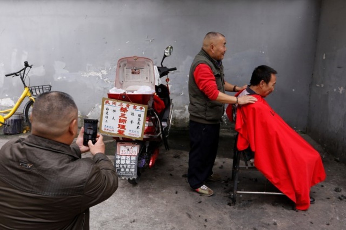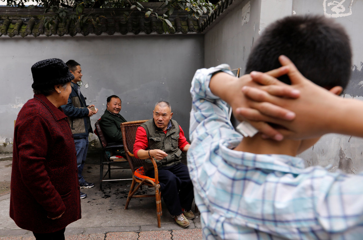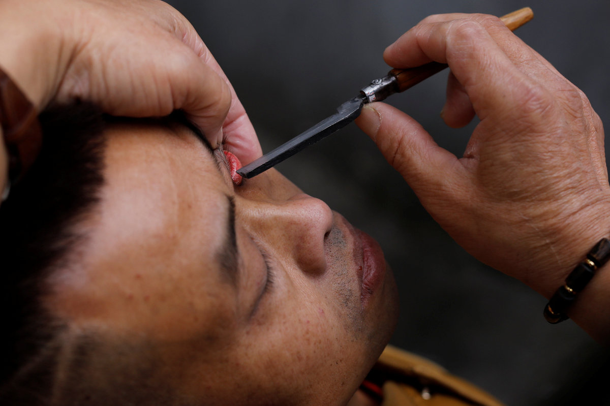 CHENGDU, China (Reuters) - Chinese street barber Xiong Gaowu deftly scrapes a straight razor along the inside of his customer's eyelid.