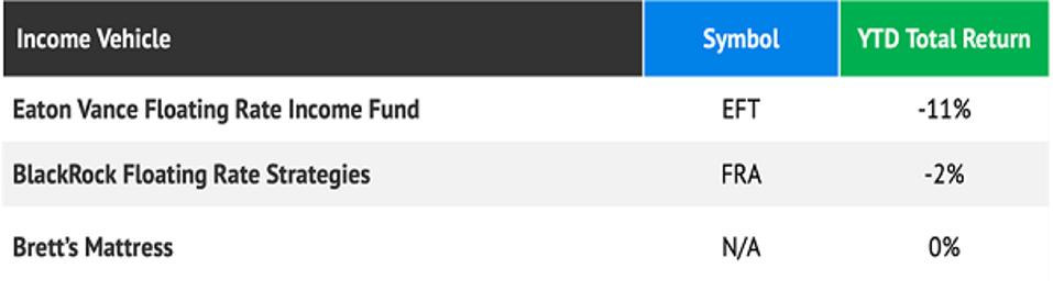 Floating-rate closed-end funds (CEFs) usually beat their comatose ETF counterparts. CEFs benefit from active management. When we let the ETF computers do the fixed-income picking, they lose to my mattress.