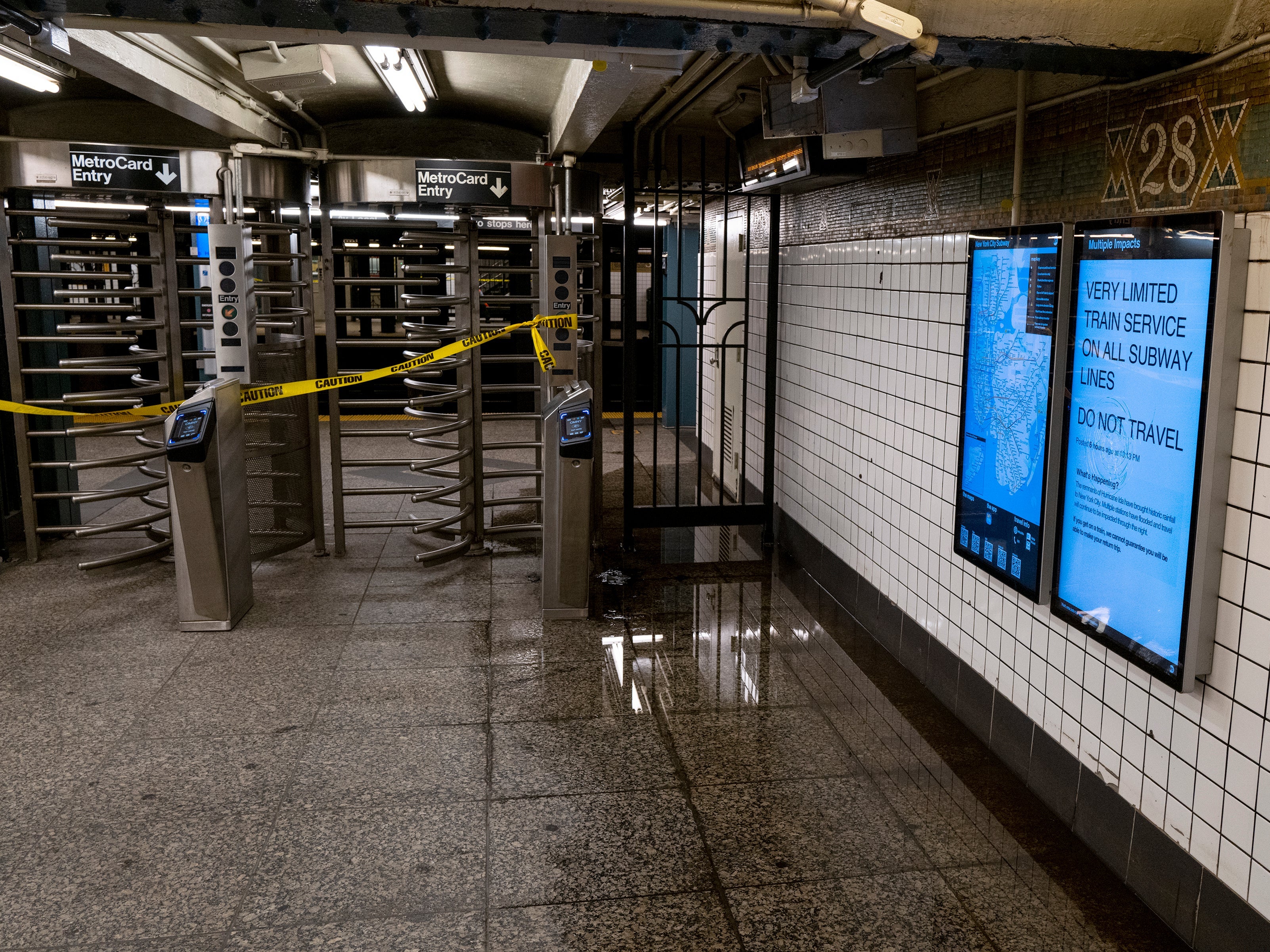 New York City also experienced flooding, with social media images showing water gushing over subway platforms and trains.