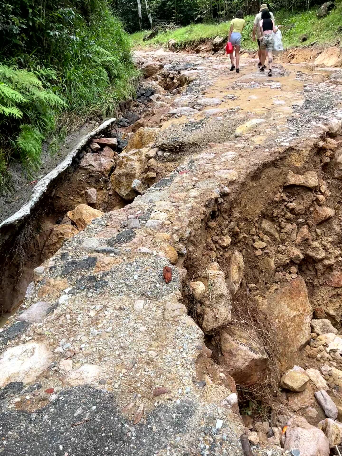 Mr Brown said there were about 15 causeways across the main road and a massive landslip had completely covered the road near the 10th causeway.