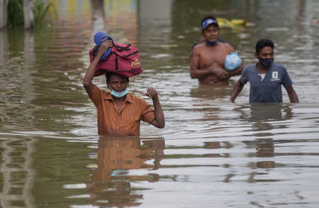Rains have been pounding six districts of the Indian Ocean island nation since Thursday night, and many houses, paddy fields and roads have been inundated, blocking traffic.