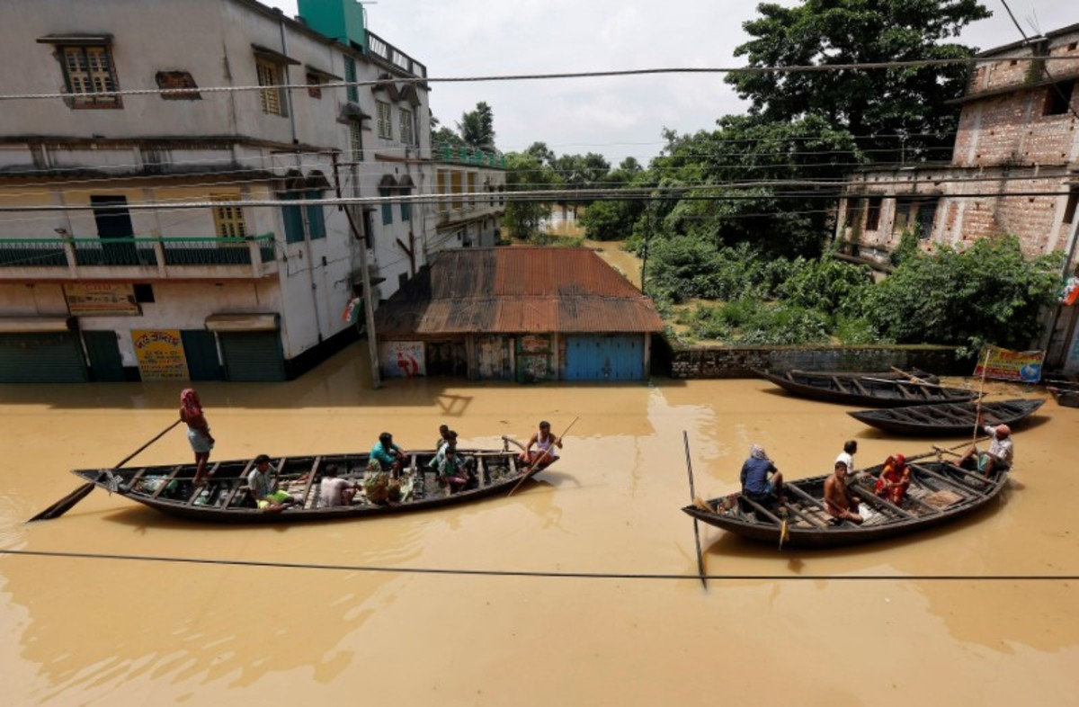 People paddle their boats as they try to move to safer places along a flooded street in West Midnapore district, in West Bengal. REUTERS/Rupak De Chowdhuri