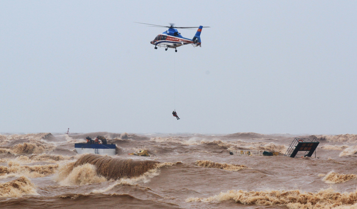 Footage broadcast by VTV showed fishermen being rescued by coastguard and helicopters as strong winds battered the central Vietnamese coast in the central province of Quang Tri.