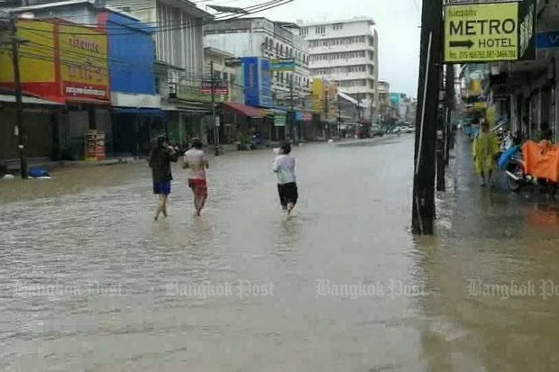 Flash floods have submerged commercial areas in downtown Nakhon Si Thammarat while 35 schools in the southern province were closed Monday following two days of downpours.