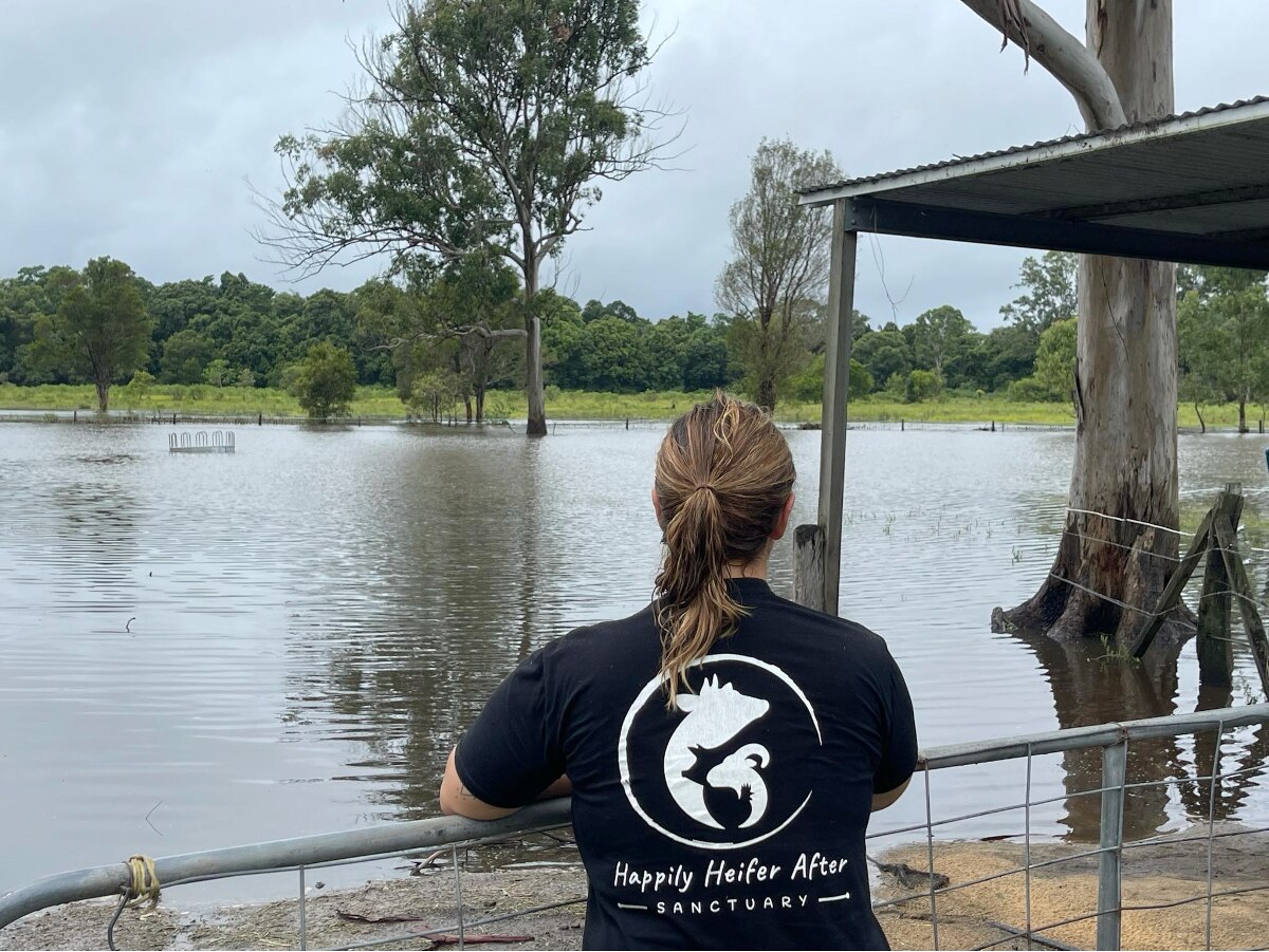 At Palmview, more than 75 animals were moved to higher ground at the Happily Heifer After Sanctuary where 80 per cent of the property was flooded.