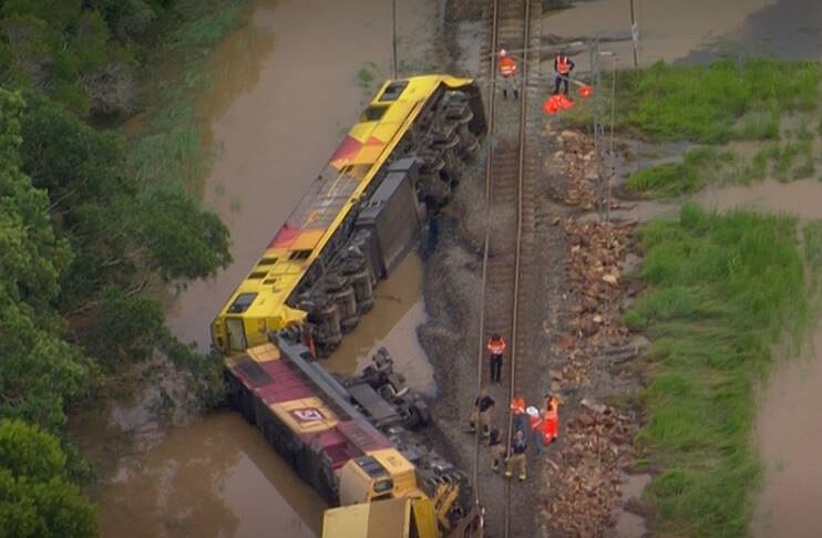 Meanwhile, authorities are assessing the extent of a diesel spill after a freight train derailed during torrential rain on Tuesday night at Traveston, south of Gympie.
