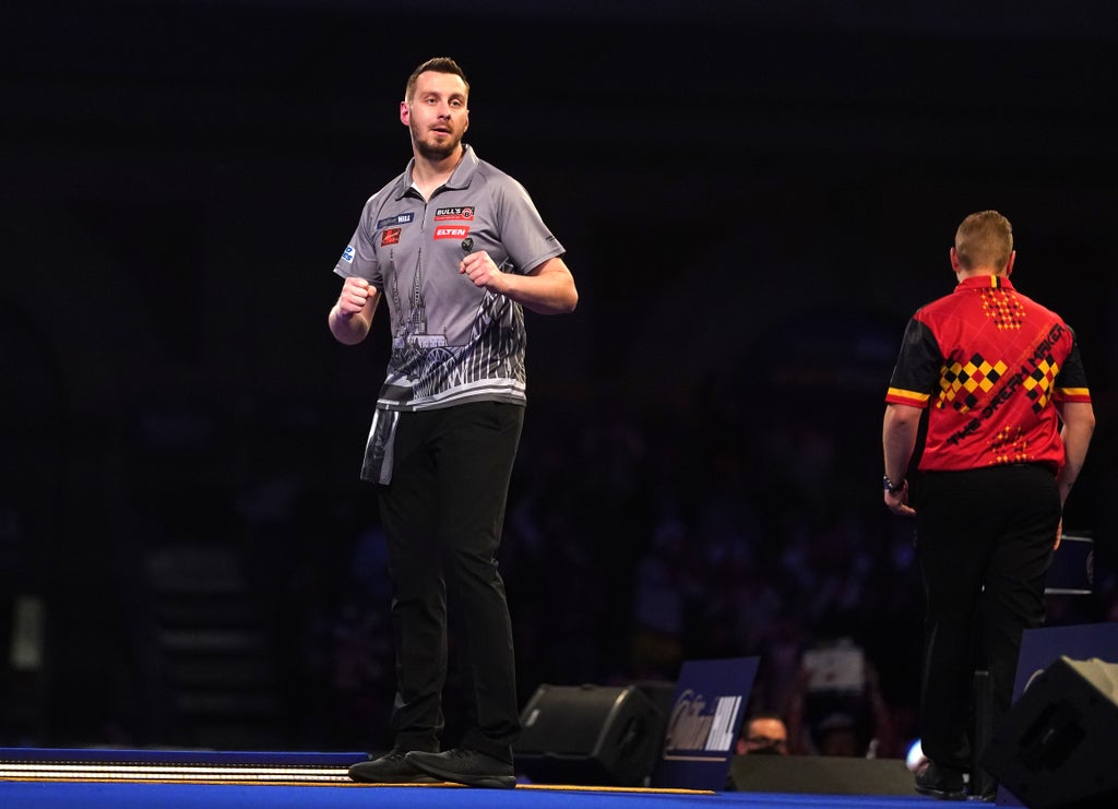 The German debutant, who had beaten compatriot Martin Schindler in round one, forced a deciding leg in the opening set and a third 180 then helped secure an 11-dart finish.