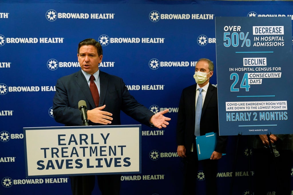 Gov. Ron DeSantis spoke somberly when asked about surpassing 50,000 COVID-19 deaths during a Fort Lauderdale news conference promoting the use of monoclonal antibodies, a treatment for people infected with the disease that reduces death and hospitalization if given early.