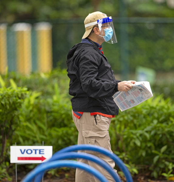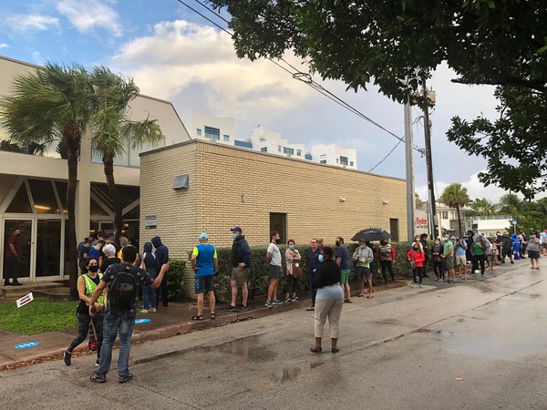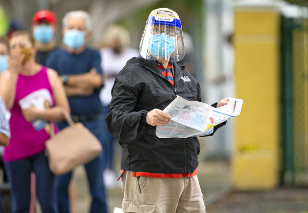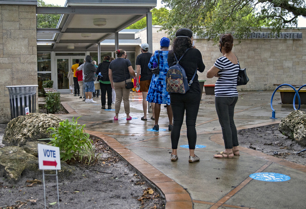 But the line moved quickly, with voters waiting 15 to 20 minutes to enter the library and cast their ballots. A pair of Hialeah police officers walked up and down the line, occasionally telling people to stand at a distance. An officer told the Miami Herald he was there only to ensure voters were following COVID-19 safety precautions outside.