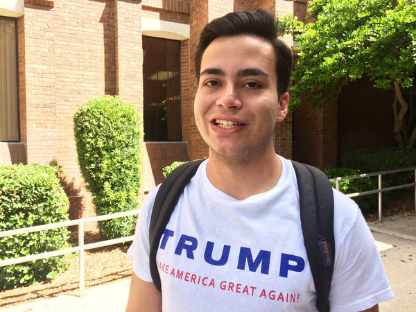 The 21-year-old mechanical engineering student strode into the math building wearing a Trump T-shirt, which he rotates with a "Hillary for prison" shirt. A lot of hostility toward Trump results from "misrepresentation through the media and out-of-context quotes," Hazrati said, and he is glad for the chance to set fellow students straight.