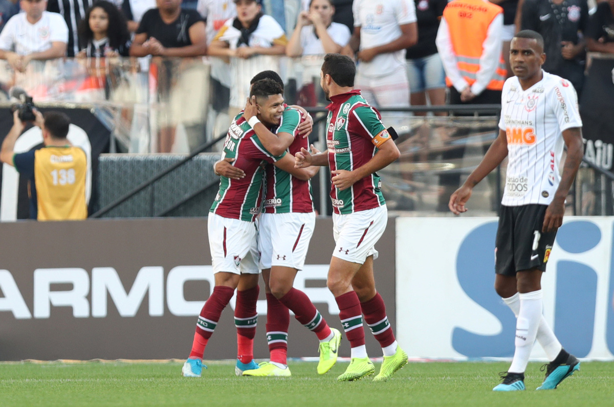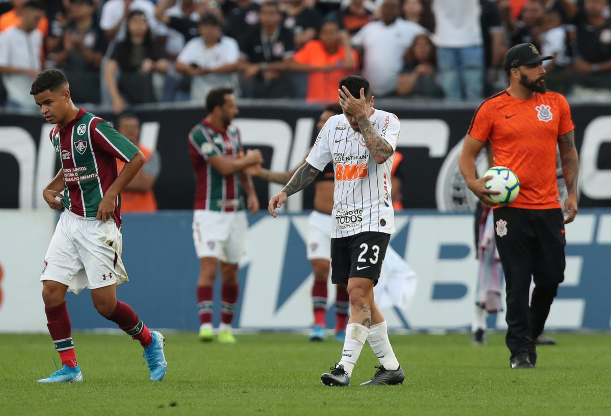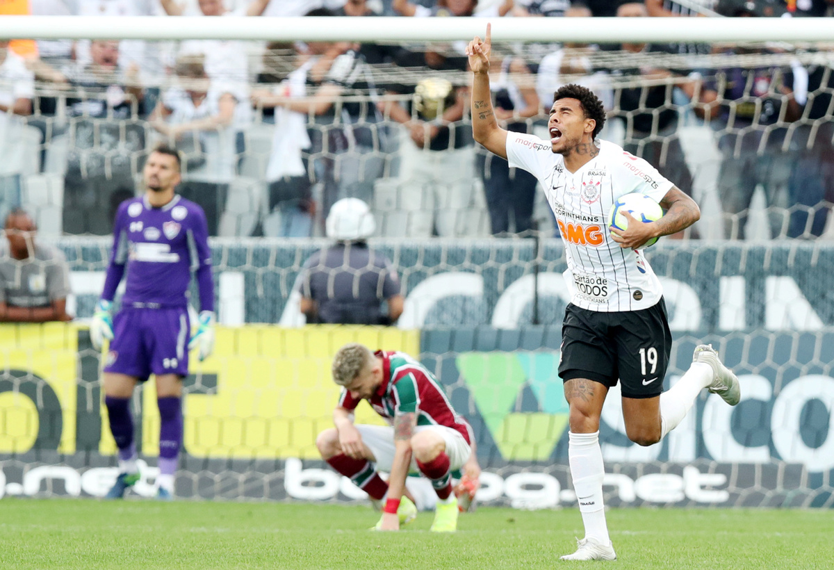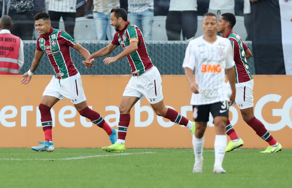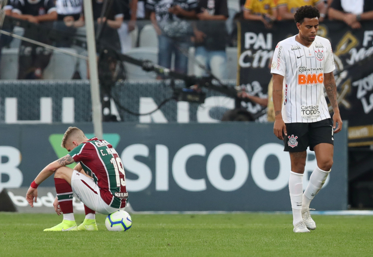 Soccer Football - Brasileiro Championship - Corinthians v Fluminense - Arena Corinthians, Sao Paulo, Brazil - December 8, 2019 Fluminense's Gilberto in action with Corinthians' Gabriel REUTERS/Amanda PerobelliSoccer Football - Brasileiro Championship - Corinthians v Fluminense - Arena Corinthians, Sao Paulo, Brazil - December 8, 2019 Fluminense's Evanilson celebrates scoring their first goal REUTERS/Amanda PerobelliSoccer Football - Brasileiro Championship - Corinthians v Fluminense - Arena Corinthians, Sao Paulo, Brazil - December 8, 2019 Fluminense's Evanilson celebrates scoring their first goal REUTERS/Amanda PerobelliSoccer Football - Brasileiro Championship - Corinthians v Fluminense - Arena Corinthians, Sao Paulo, Brazil - December 8, 2019 Fluminense's Nene in action REUTERS/Amanda PerobelliSoccer Football - Brasileiro Championship - Corinthians v Fluminense - Arena Corinthians, Sao Paulo, Brazil - December 8, 2019 Corinthians' Fagner looks dejected after the match REUTERS/Amanda PerobelliSoccer Football - Brasileiro Championship - Corinthians v Fluminense - Arena Corinthians, Sao Paulo, Brazil - December 8, 2019 Corinthians' Gustavo celebrates scoring their first goal REUTERS/Amanda Perobelli