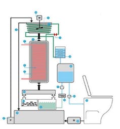 Instead of your waste going from your toilet via a sewer to a treatment works offsite, this technology treats your waste onsite and allows the treated outputs to be safely reused or disposed of.