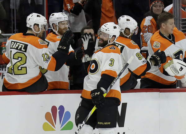 A minute later, Michael Raffl rifled a slapper from the point off an assist from Giroux for a two-goal lead. The goal was set up after Nick Schultz found himself on an unlikely breakaway. He missed the chance but hustled to corral the rebound and pass the puck off to Giroux. Schultz said it was his first breakaway since the early 2000s.
