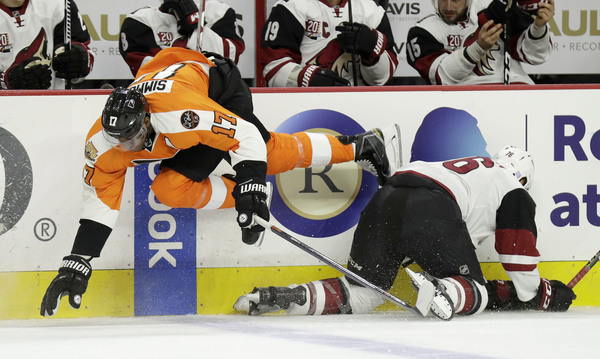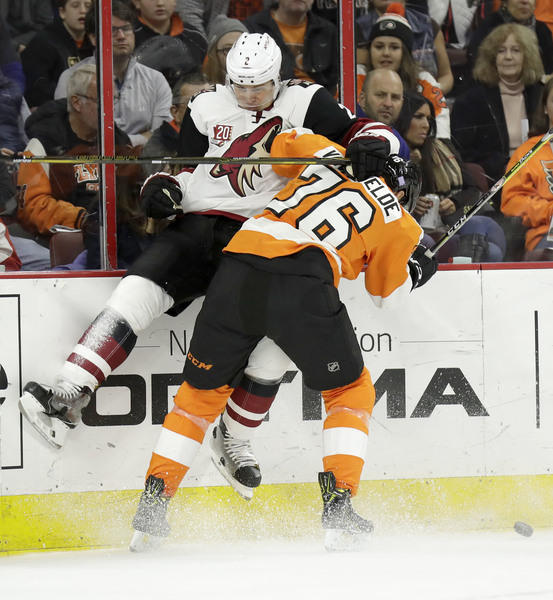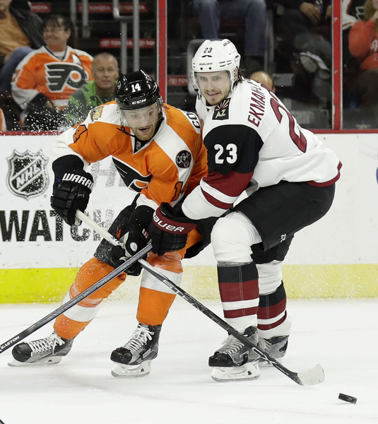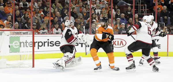 Arizona, on goals by Jamie McGinn and Oliver Ekman-Larsson, built a 2-0 first-period lead. That meant the Flyers had been outscored in the opening period this year, 8-1.