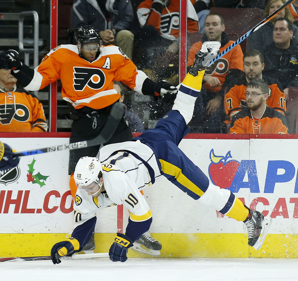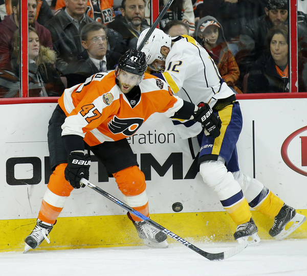 The Flyers' six-game home winning streak ended Monday night as they fell to Nashville in a shootout, 2-1, at the Wells Fargo Center.