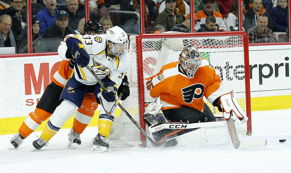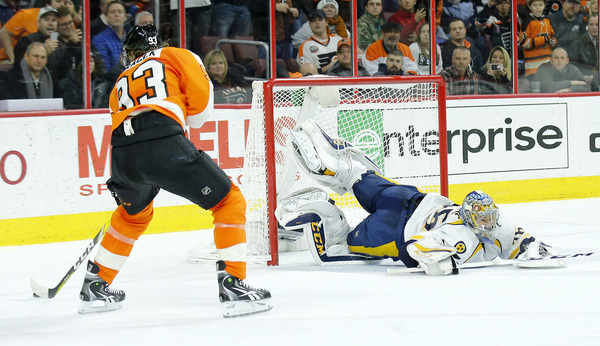 Steve Mason (30 saves) made four stops during a Nashville-controlled overtime, helping send the game to a shootout. But Nick Cousins, Claude Giroux, and Jake Voracek couldn't beat Pekka Rinne in the shootout.