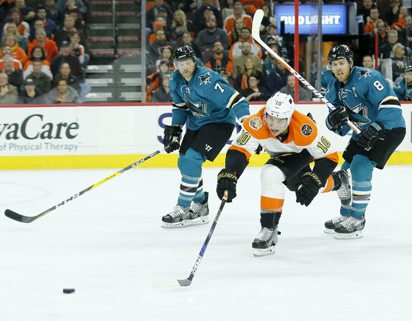 The Flyers snapped a three-game losing streak and handed the Sharks their fourth straight loss.
