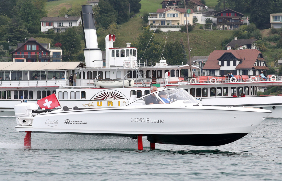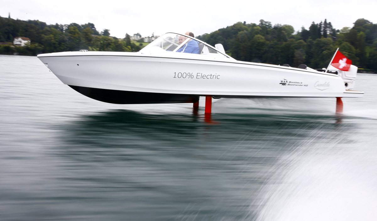 The world's first electric-powered hydrofoil speedboat, which reduces energy consumption and noise - as well as sea sickness - by "flying" above the waves, has made its debut on Switzerland’s lakes.
