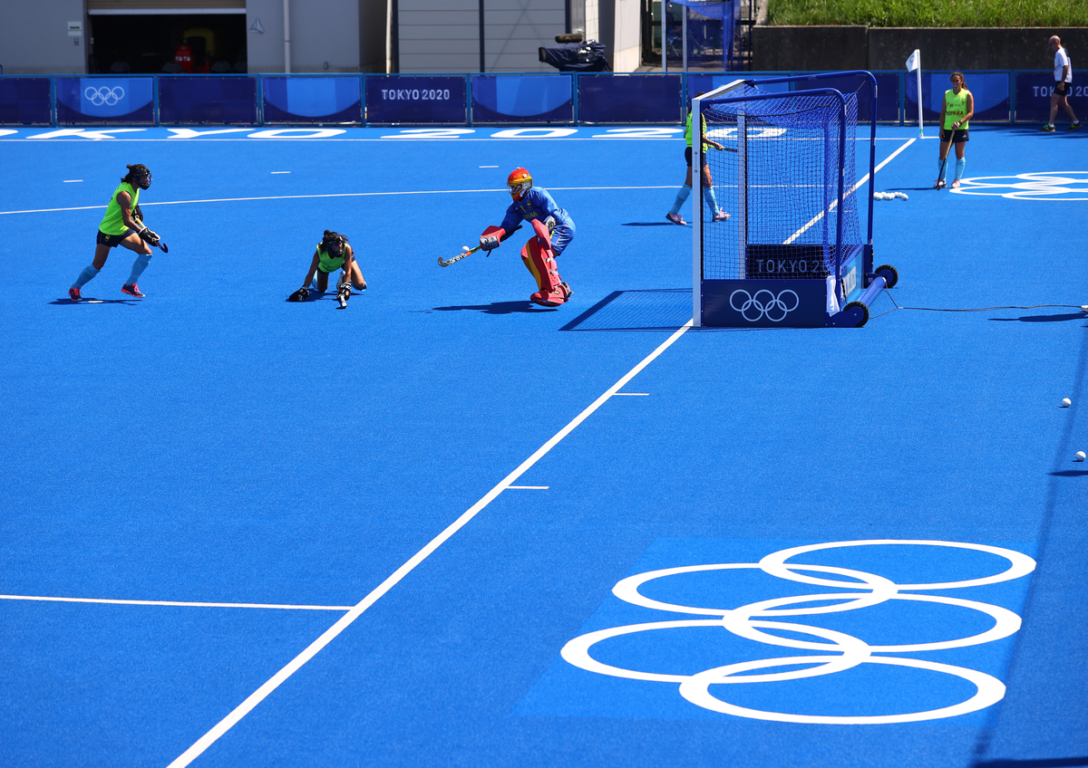 At the Oi Hockey Stadium, which was newly constructed in a park near Tokyo Bay.