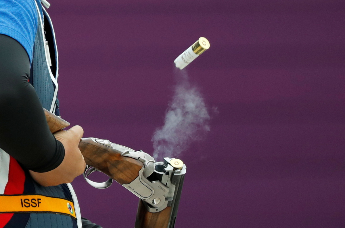* Shotgun competitions take place outdoors where shooters fire at a moving clay target.