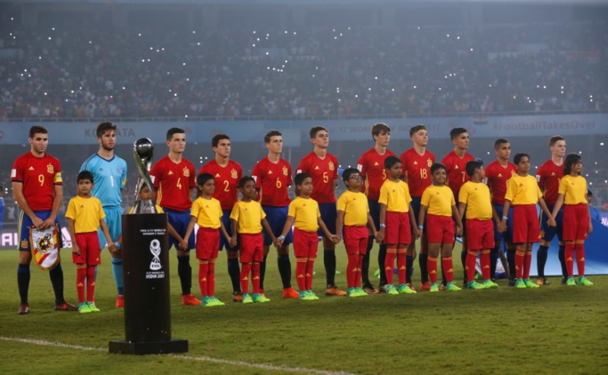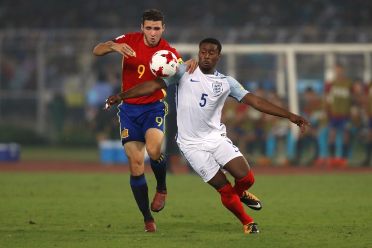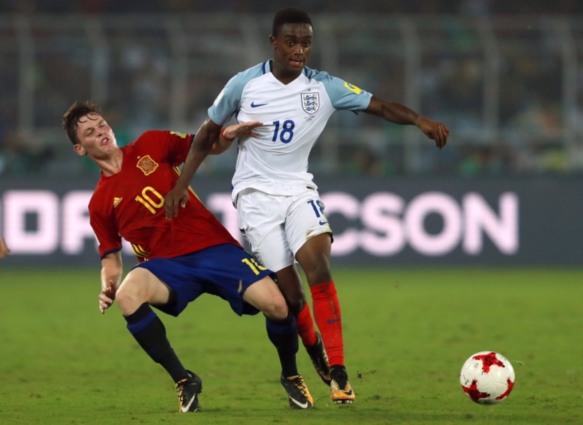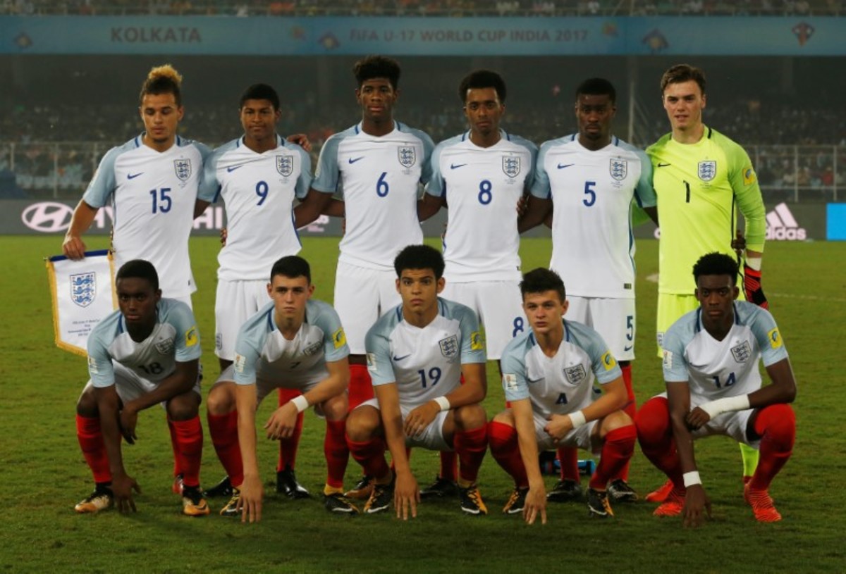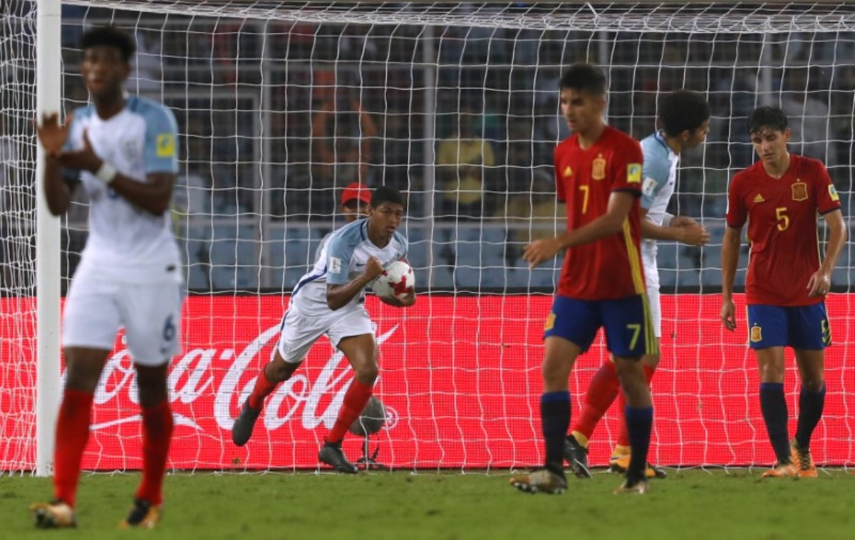 Soccer Football - FIFA Under 17 World Cup Final - England vs Spain - Vivekananda Yuba Bharati Krirangan, Kolkata, India - October 28, 2017 England’s Angel Gomes celebrates with the trophy after winning the 2017 FIFA U-17 World Cup REUTERS/Danish SiddiquiSoccer Football - FIFA Under 17 World Cup Final - England vs Spain - Vivekananda Yuba Bharati Krirangan, Kolkata, India - October 28, 2017 England celebrate winning the 2017 FIFA U-17 World Cup REUTERS/Danish SiddiquiSoccer Football - FIFA Under 17 World Cup Final - England vs Spain - Vivekananda Yuba Bharati Krirangan, Kolkata, India - October 28, 2017 England’s Philip Foden celebrates scoring a goal with teammates REUTERS/Danish SiddiquiSoccer Football - FIFA Under 17 World Cup Final - England vs Spain - Vivekananda Yuba Bharati Krirangan, Kolkata, India - October 28, 2017 England’s Marc Guehi celebrates winning the 2017 FIFA U-17 World Cup REUTERS/Danish SiddiquiSoccer Football - FIFA Under 17 World Cup Final - England vs Spain - Vivekananda Yuba Bharati Krirangan, Kolkata, India - October 28, 2017 England’s Rhian Brewster and Conor Gallagher celebrate winning the 2017 FIFA U-17 World Cup REUTERS/Danish SiddiquiSoccer Football - FIFA Under 17 World Cup Final - England vs Spain - Vivekananda Yuba Bharati Krirangan, Kolkata, India - October 28, 2017 England’s Morgan Gibbs White in action with Spain’s Hugo Guillamon REUTERS/Danish SiddiquiSoccer Football - FIFA Under 17 World Cup Final - England vs Spain - Vivekananda Yuba Bharati Krirangan, Kolkata, India - October 28, 2017 England’s Steven Sessegnon in action with Spain’s Sergio Gomez REUTERS/Danish SiddiquiSoccer Football - FIFA Under 17 World Cup Final - England vs Spain - Vivekananda Yuba Bharati Krirangan, Kolkata, India - October 28, 2017 England’s Rhian Brewster celebrates scoring their first goal REUTERS/Danish SiddiquiSoccer Football - FIFA Under 17 World Cup Final - England vs Spain - Vivekananda Yuba Bharati Krirangan, Kolkata, India - October 28, 2017 Spain’s Abel Ruiz and Hugo Guillamon celebrate after Sergio Gomez scores their second goal REUTERS/Danish SiddiquiSoccer Football - FIFA Under 17 World Cup Final - England vs Spain - Vivekananda Yuba Bharati Krirangan, Kolkata, India - October 28, 2017 Spain’s Sergio Gomez in action REUTERS/Danish SiddiquiSoccer Football - FIFA Under 17 World Cup Final - England vs Spain - Vivekananda Yuba Bharati Krirangan, Kolkata, India - October 28, 2017 England’s Joel Latibeaudiere and Marc Guehi in action REUTERS/Danish SiddiquiSoccer Football - FIFA Under 17 World Cup Final - England vs Spain - Vivekananda Yuba Bharati Krirangan, Kolkata, India - October 28, 2017 England’s Marc Guehi in action with Spain’s Abel Ruiz REUTERS/Danish SiddiquiSoccer Football - FIFA Under 17 World Cup Final - England vs Spain - Vivekananda Yuba Bharati Krirangan, Kolkata, India - October 28, 2017 England players line up during the national anthem before the match REUTERS/Danish SiddiquiSoccer Football - FIFA Under 17 World Cup Final - England vs Spain - Vivekananda Yuba Bharati Krirangan, Kolkata, India - October 28, 2017 Spain players line up during the national anthem before the match REUTERS/Danish SiddiquiSoccer Football - FIFA Under 17 World Cup Final - England vs Spain - Vivekananda Yuba Bharati Krirangan, Kolkata, India - October 28, 2017 England team group before the match REUTERS/Danish Siddiqui