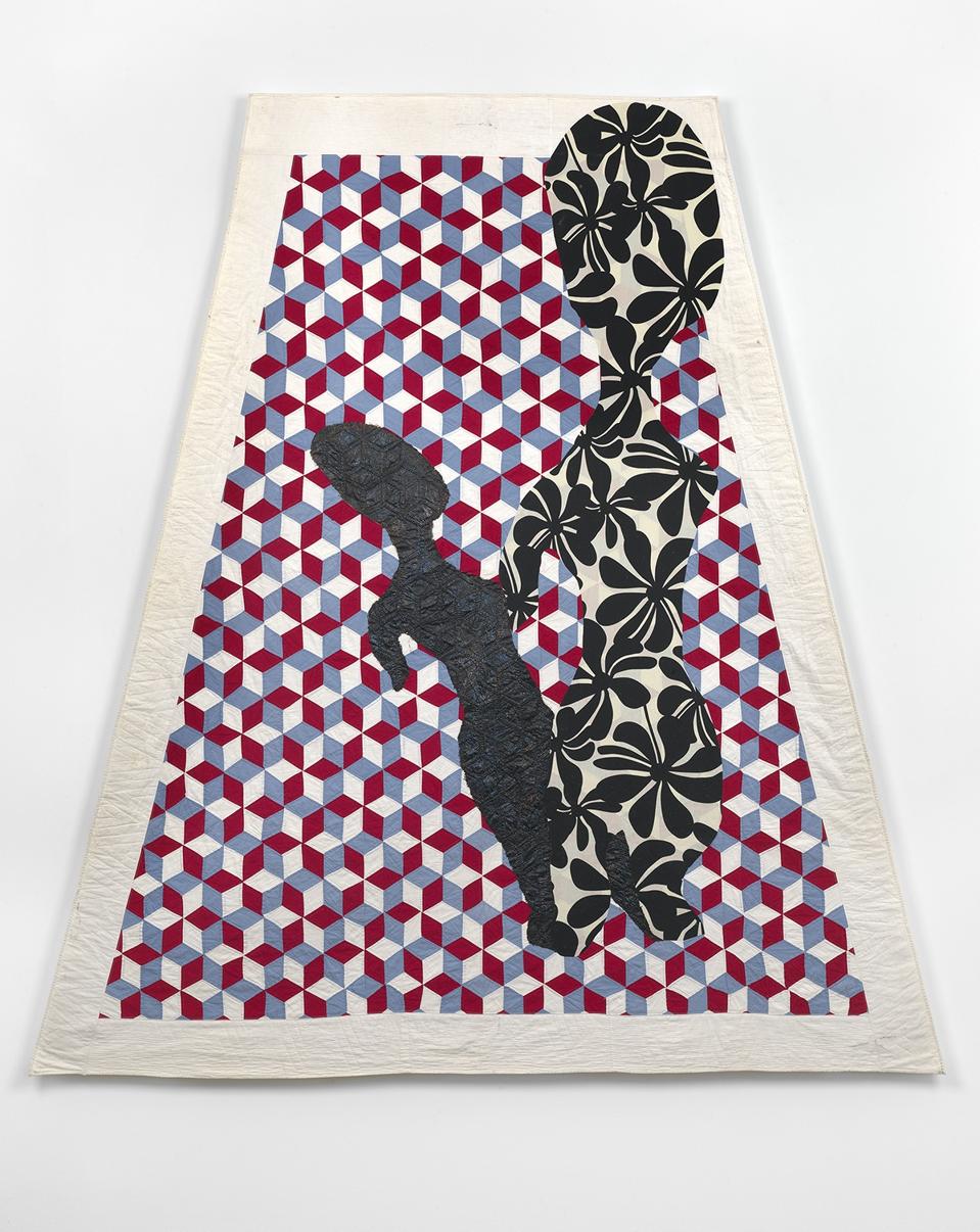 “Codeswitch” represents the first survey of Biggers’ quilt-based works and features more than 30 examples of his unique manipulation on the antique quilts he has collected. To each quilt the artist has used a starting point, he has then variously applied paints, assorted textiles, burnt cork, tar, charcoal and other materials. This process, like linguistic code-switching, recognizes language plurality, as the quilts signal their original creator’s intent as well as the new layers of meaning given to them through Biggers’s artistic intervention.
