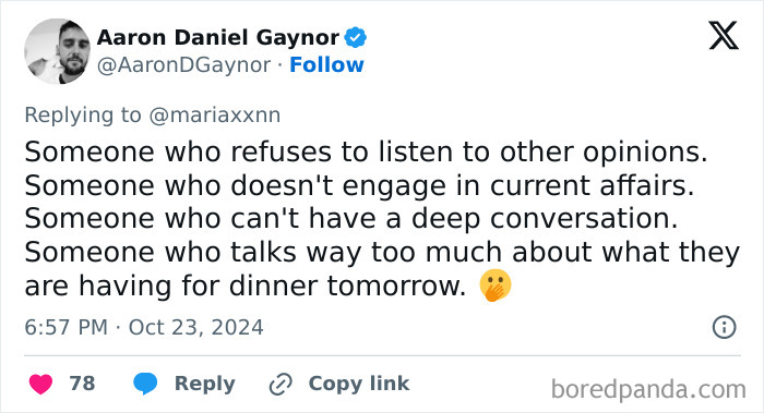 For example, recently, a couple of weeks ago, the user @mariaxxnn asked this question on X: "What’s a sign of very low intelligence?" As of today, the tweet has 533 reposts, more than 6K likes and over 10.8K various quotes. Without taking into account the inevitable repetitions, of course, it turns out that human stupidity has so many different facets! So welcome to this selection of the most interesting opinions of the thread, made for you by Bored Panda!