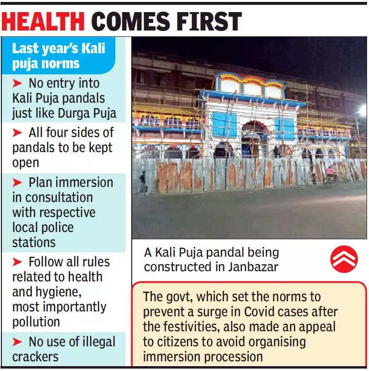 Back in Kolkata, city police held multiple meetings with Kali Puja organizers at the divisional level on Tuesday. “A few matters are pending at the high court. We have told the organizers that they have to follow the court orders verbatim as and when they are issued. We have also reminded them to continue with last year’s rules and stop the entry of visitors into pandals. We have repeatedly warned them against crowding near the main barricade,” said a senior officer.