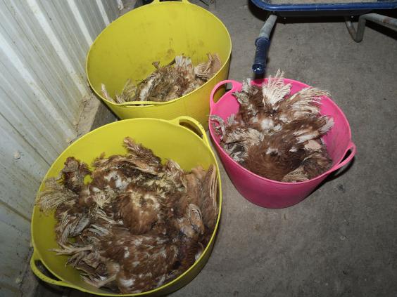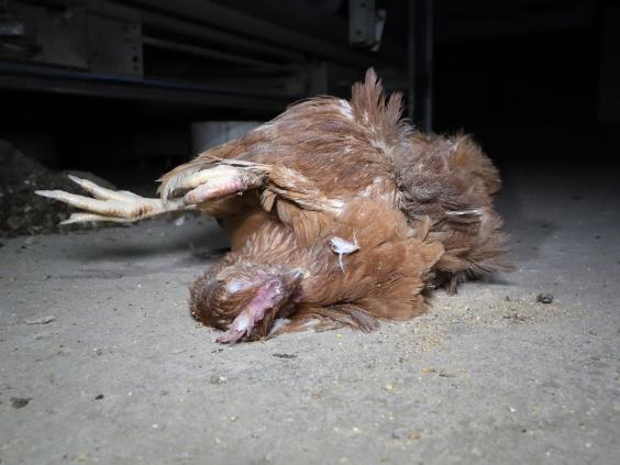 Dr Toni Shephard, the UK director of Animal Equality, said: “The pitiless practice of locking hens inside crowded cages inevitably leads to the frail, featherless birds and high mortality that we found on this farm.