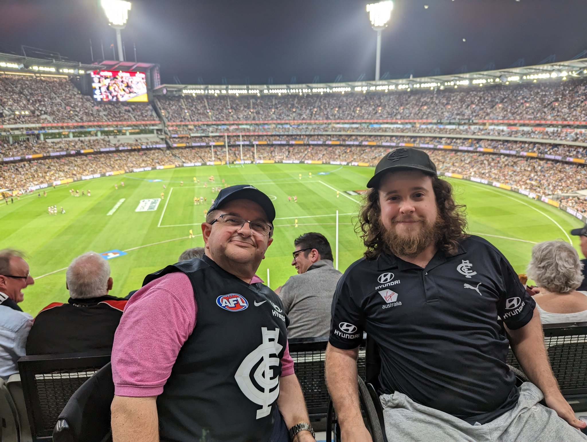 Darren Cunningham and his son James, who both use wheelchairs, bought level four general admission tickets for Thursday night's Richmond-Carlton match.