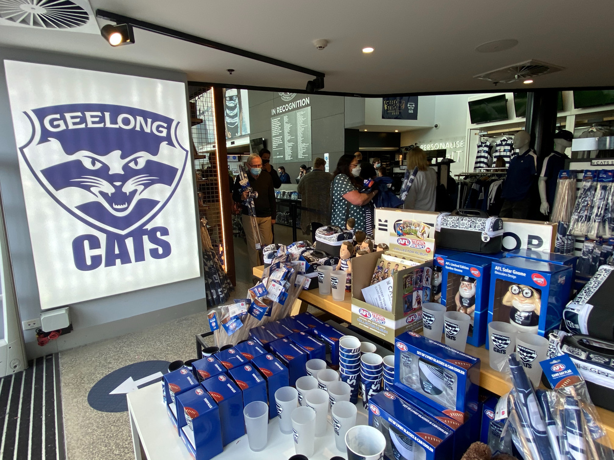 On Grand Final eve on Friday, a traditional public holiday, shops hung blue-and-white decorations in the Cats' colours and cafes filled their tables to the limit of government thresholds.